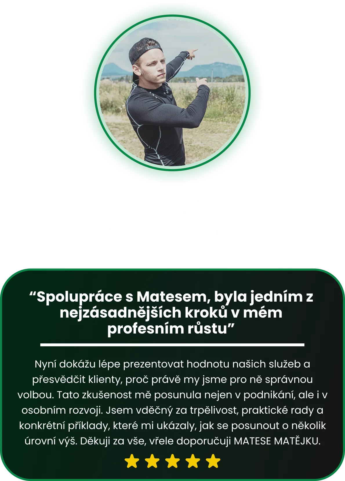 A udělám maximum pro to, aby ti těch 30–45 minut dalo víc než většina obchodních školení za peníze.